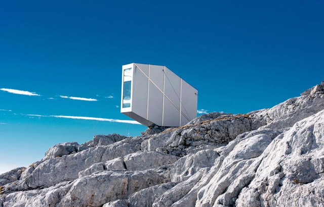 Ova malena aluminijumska kabina koju je projektovao slovenački studio OFIS Arhitekti nadvija se preko ivice planine Kanin na slovenačko-italijanskoj granici.