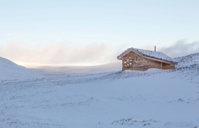 Planine Nacionalnog parka Cairngorms u Škotskoj nude dramatičnu pozadinu ovoj kolibi izrađenoj od neprerađenog drveta ariša. Projektovao ju je Moxon Architects.