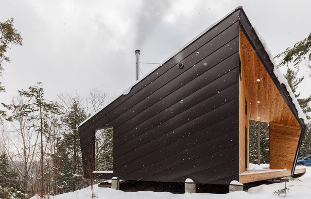 Čileanski arhitekta Gonzalo Iturriaga koristio je presavijene ploče od crne borovine kako bi stvorio ovu fasetiranu kabinu na stenovitoj lokaciji u čileanskoj regiji Valparaiso.