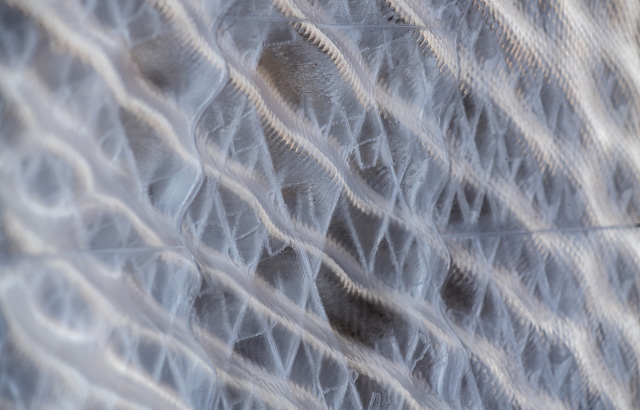 Preklapajuća rebrasta površina je različitog oblika poput talasa, pa je negde ispupčena a negde uvučena, varirajući u debljini, a sve u cilju dobijanja valovite forme. Omogućeno je oblikovanje fasade u zavisnosti od konteksta, pa tako talasi mogu da budu uređeni da štite fasadu od sunčeve toplote leti, i omogućavaju optimalno osvetljenje zimi.