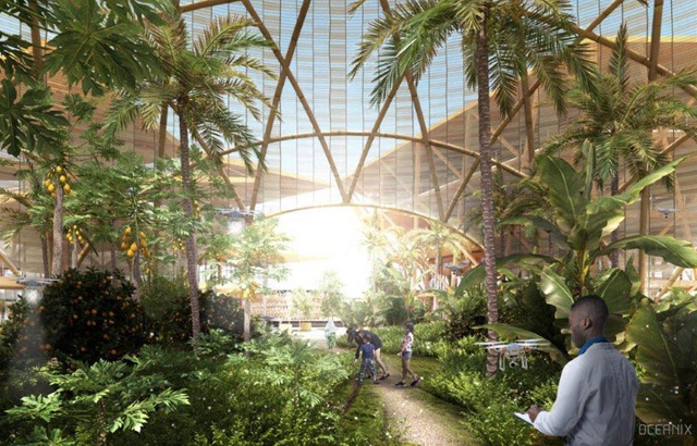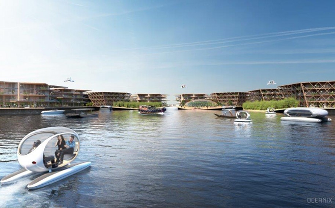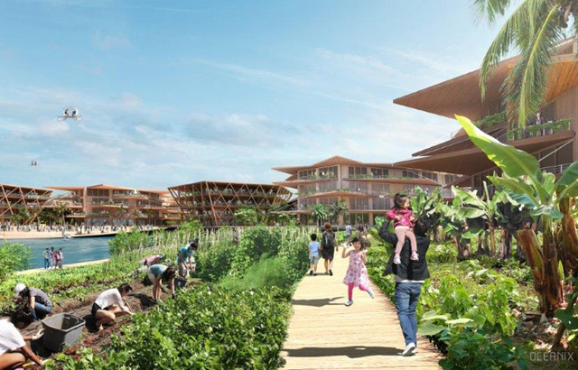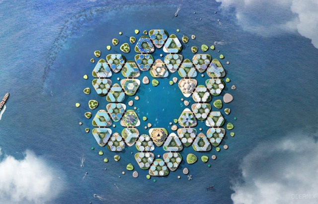 „Oceanix City“ je zamišljen kao samoodrživa plutajuća zajednica koja kanališe kružne tokove energije, vode, hrane i otpada. Stanovnici bi se bavili poljoprivredom, kako iznad tako i ispod mora.