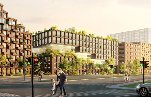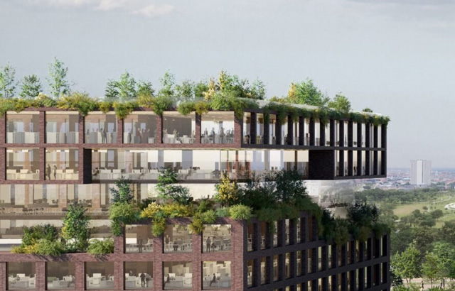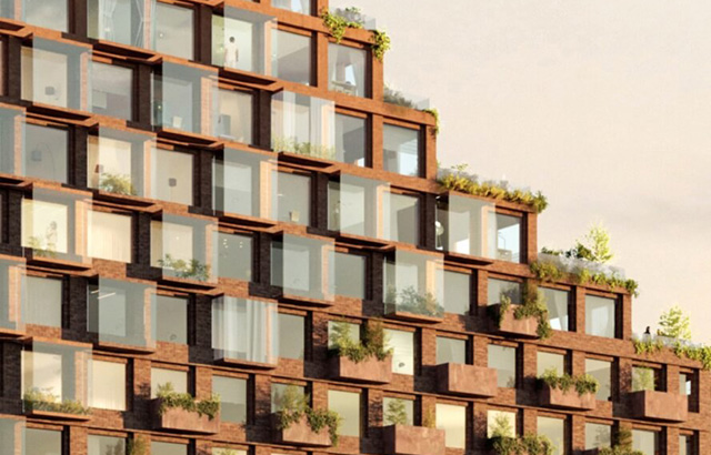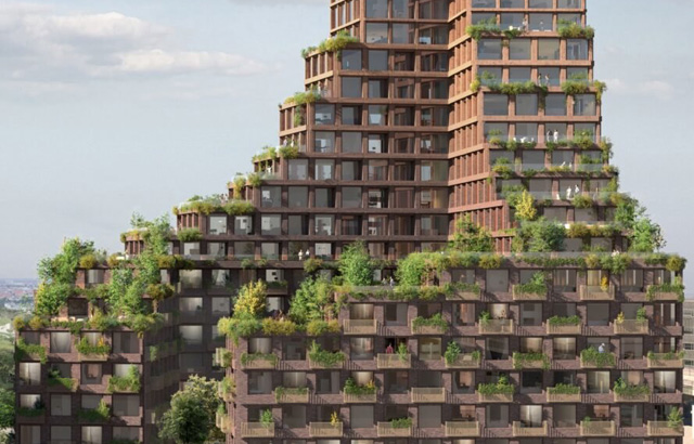 Stepenasta zgrada sa zelenom fasadom predstavlja stub novodrživog koncepta gradnje u odnosu klasičnu zgradu sa dvorištem u Kopenhagenu. Uvođenje većeg dvorišta i drugačijeg rasporeda prostorija omogućava ulazak veće količine prirodnog svetla u stanove i stvara prostor za terasaste zelene površine.