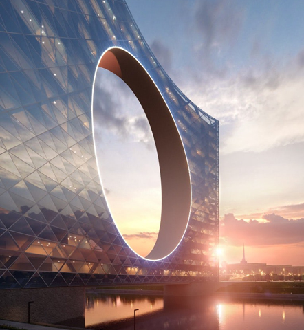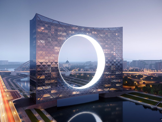 Ovaj projekat pod nazivom „Tower of the Sun“ je neobična visokospratnica koju karakteriše upečatljiv dizajn tj. ogromna kružna rupa u središtu. Specifičan je i po tome što se proteže iznad reke i predstavlja neku vrstu mosta a takođe koristi i održivu tehnologiju tj. energiju crpi iz reke.