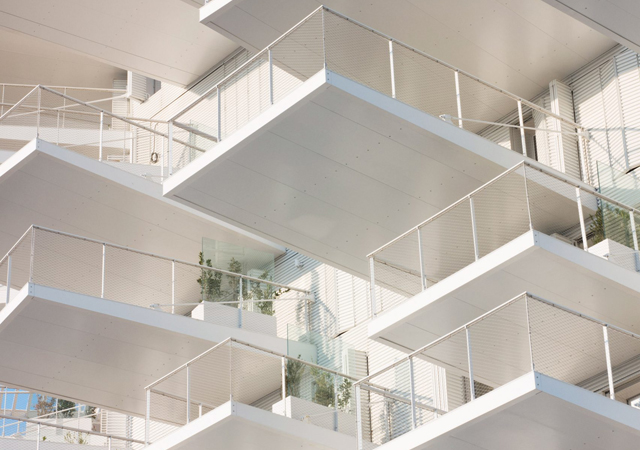 Svi stanovi su okrenuti u različitim pravcima i svi imaju svoje balkone. Neki od balkona su konzolni i dugi su više od sedam metara, dok dupleksi imaju dva koja su povezana stepenicama. Ovi spoljni prostori imaju cilj da podstaknu stanovnike da više vremena provode napolju i da komuniciraju među sobom. Balkoni su potpuno opremljeni dnevni boravci pa stanovnici mogu da žive i spolja i unutra.