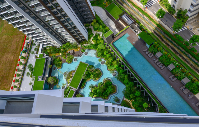 Ukupno 1899 montažnih i gotovih modula izgrađeno je izvan lokacije. Betonski moduli su izliveni u Senai u Maleziji, nakon čega su kompletirani u fabrici u Tuasu u zapadnom Singapuru. Svaki modul je bio oko 85 odsto završen van lokacije i nakon toga transportovan na gradilište gde su delovi montirani na licu mesta. Prozorski okviri i zastakljenja, vrata, ormari i instalacije uključujući vodovodne i sanitarne cevi, električne cevi i kanale i sl. potpuno su bili gotovi i ugrađeni u modul pre njegovog dolaska na gradilište.