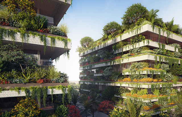 Svaki stan će imati poseban balkon na kome će biti zasađene vrste primerene lokalnoj klimi. Biljke će biti posađene tako da ne guše jedna drugu, da budu međusobno komplementarne i da se osiguraju različite visine i cvetanja tokom sezone kako bi bilo dobadljivo za oko. Procenjuje se da će biljke poboljšati kvalitet vazduha, tako što će apsorbovati sedam tona ugljen-dioksida a proizvesti osam tona kiseonika godišnje.