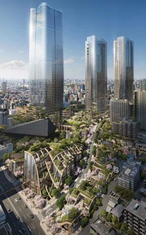 U planu je da u okviru projekta razvoja Toranomon-Azabudai distrikta u Tokiju gde će se nalaziti najviši neboder u Japanu bude izgrađena i džinovska pergola prekrivena biljkama. Projekat za ovu „vrtnu“ pergolu uradio je Heatherwick Studio, koji je pored toga isprojektovao i javne površine i brojne niskospratne blokove zgrada u okviru Minata. Studio Heatherwick osmislio je niz zgrada koje su projektovane tako da distriktu daju "prepoznatljiv identitet".