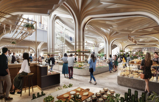 Sve zgrade će biti povezane podzemnim pešačkim tunelom dugim 700 metara u okviru koga će se nalaziti velika dvorana za hranu.