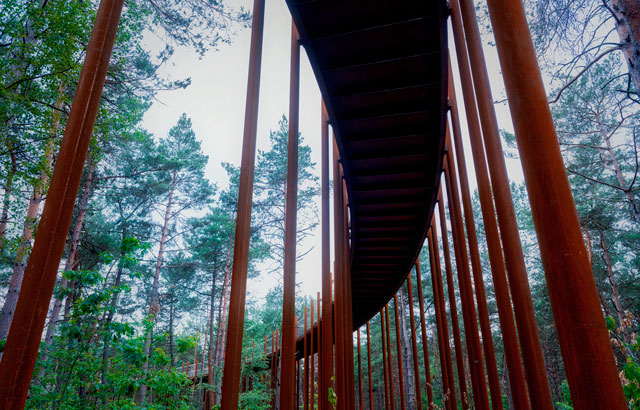 Radi sigurnosti, staza je jednosmerna i sadrži žičanu ogradu sa rukohvatom. Novi biciklistički most postavljen je na konstrukciju od 449 jedinstvenih stubova izrađenih od nerđajućeg čelika kako bi simbolizovali debla borova, pa se shodno tome i celokupna konstrukcija lepo uklopila u svoje okruženje.