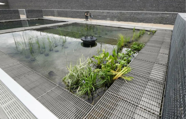 Da bi stvorili potpuno prirodni bazen siguran za plivače, projektanti su morali da rade pod veoma strogim propisima koji važe za javne bazene u Kanadi. Potpuno izbegavanje upotrebe hemikalija bilo je izazovno, pa je tim zbog toga morao da sarađuje sa nekoliko stručnjaka na stvaranju uravnoteženog ekosistema kako bi se stvorio sistem „žive vode“.