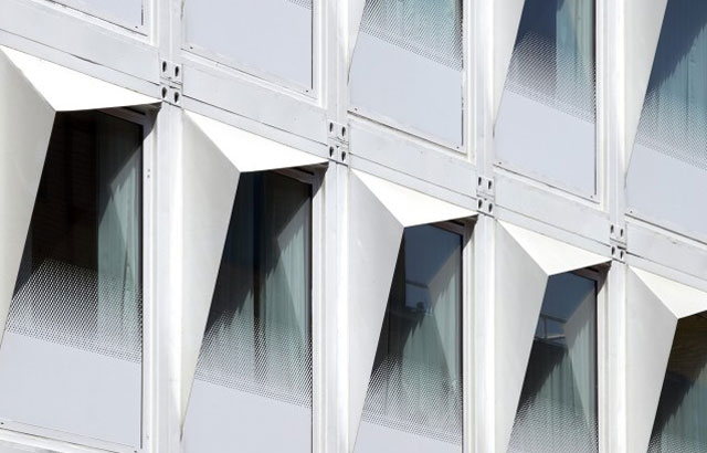 Ono što karakteriše objekat jesu prozori na kojim su postavljene male nadstrešnice koje ublažavaju sunčevu toplotu i daju poseban pečat fasadi. Za smanjenje vibracija i prenošenje zvuka kroz studije, duž stepenica i liftova, korišćene su gumene obloge.