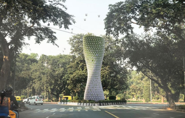 Nju Delhi je iz godine u godinu sve zagađeniji, što pokazuje i alarmatni nivo čestica PM 2,5. Shodno tome Studio Symbiosis Architects tražio je rešenje za sve građane, tj. da u čistom vazduhu mogu da uživaju svi a ne samo oni koji mogu da priušte kućne prečišćivače vazduha.