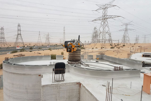 Osnovna konstrukcija zgrade izgrađena je pomoću samo jednog 3D štampača, naravno uz učešće građevinskih radnika. Ova dvospratna upravna zgrada nalazi se u Dubaiju i projektovala ju je kompanija Apis Cor, specijalizovana za ovu vrstu gradnje. Ovo je najveća zgrada na svetu izgrađena tehnologijom 3D štampe. Visoka je 9,5m i prostire se na površini od 640 kvadratnih metara.