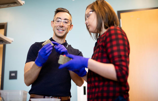 Wil Strubar i Sarah Williams-postdiplomac Univerziteta u Koloradu u Bolderu, sa uzorcima opeke (foto: CU Boulder College of Engineering and Applied Science)
