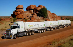 Drumski voz ili drumska kompozicija (road train ili roadtrain - eng.) je koncept transporta robe drumskim kamionima koji se primenjuje još od 1930-ih (foto: konvoj drumskih kompozicija). |