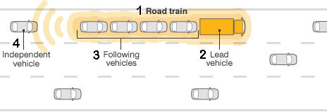 Sva vozila u jednoj kompoziciji biće opremljena navigacionim sistemom i predajnikom/prijemnikom kojim će vozači iz drugih vozila moći da komuniciraju sa glavnim vozilom koje ima ulogu "lokomotive".
