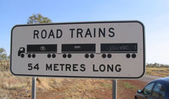 Na jedan kamion kači se tri ili više prikolica za transport robe na veće udaljenosti. Ovaj koncept se primenjuje u Australiji, Argentini, Meksiku, SAD i Kanadi (foto: saobraćajni znak u Australiji). |