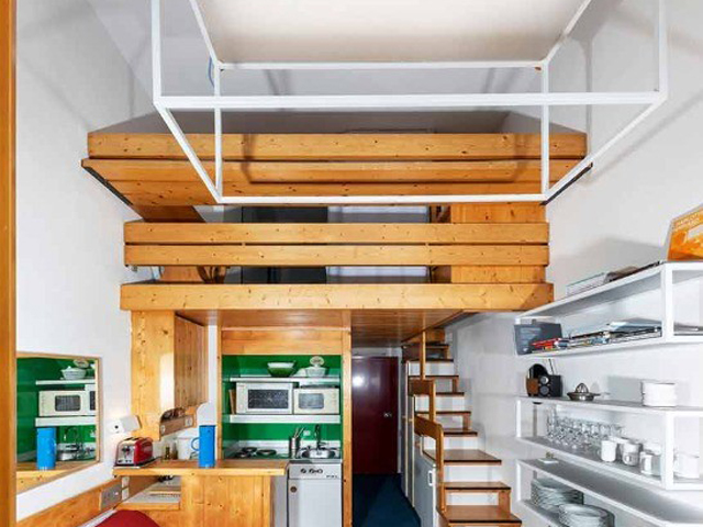 Francuski projektni studio Coudamy Architectures nedavno je transformisao mikro apartman od 19m² koristeći inovativne tehnike za uštedu prostora. Ovaj apartman nalazi se u skijalištu Les Arcs u Bourg-Saint-Mauriceu u Francuskoj. Apartman je projektovala francuska arhitektkinja Charlotte Perriand u 1960-im, pa je studio Coudamy nastojao da sačuva retro dizajn enterijera, uz poboljšanje karakteristika uvođenjem novina koje "štede" prostor.
