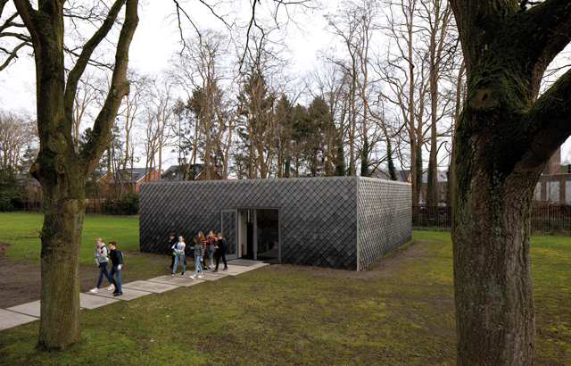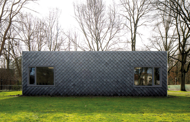 Prvu zgradu obloženu visećom šindrom od recikliranih materijala, paviljon muzičke škole u Holandiji, uradio je holandski studio Grosfeld Bekkers Van der Velde Architecten u januaru ove godine.
