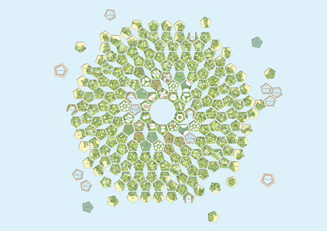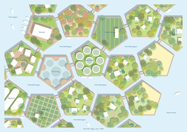 Prva nagrada je dodeljena Marcinu Kitali za projekat koji sadrži sistem platformi u obliku petouglova, koji se lako mogu povezati i odvojiti. Ovi moduli imaju ukupnu površinu od 4300m². Svaka strana pentagona je dimenzija 50 metara. Planirano je da se u okviru svakog nalazi od 1 do 30 stanovnika u 1 do 5 kuća. Prilokom projektovanja stambenih objekata, vodilo se računa o očuvanju tradicije kiribatskih zgrada, koje su niske i isprepletene obilnim zelenilom.