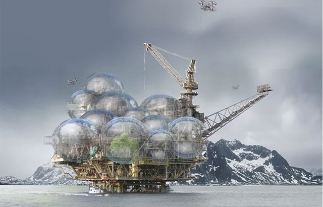 Naftne platforme predstavljaju masivne konstrukcije koje imaju zanimljiv potencijal za adaptaciju. Tako je razmišljala i firma XTU architects koja je ovaj projekat osmislila tako što je industrijska postrojenja pretvorila u poetične i egzotične stambene objekte.
