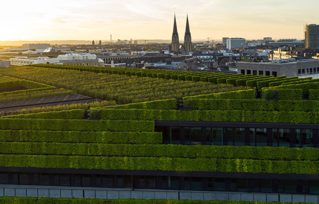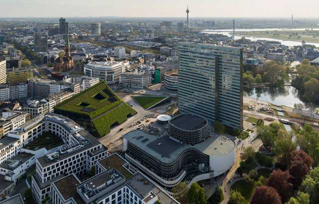 Ingenhoven Architects je utvrdio da je živa ograda najprikladniji način za integrisanje velike količine zelenila u ovakvu vrstu projekta, jer ova biljka raste lokalno i relativno je jednostavna za održavanje. Uključivanje zelenila u arhitektonske projekte, izuzev standardnih "balkonskih biljaka", zahteva sveobuhvatnu fitotehnološku analizu koja se temelji na preciznoj analizi lokacije.