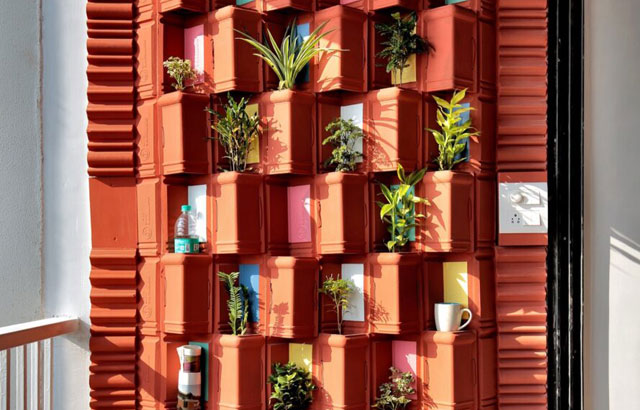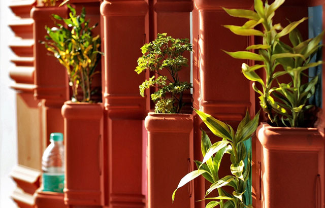 Indijska arhitektonska kompanija Manoj Patel Design Studio osmislila je zeleni zid od ponovno upotrebljenih glinenih crepova. Ona je na kreativan način upotrebila korišćenje crepove od gline od kojih je napravila nešto nalik "vertikalnoj plantaži" koja služi za održavanje prijatne temperature, umesto sistema za klimatizaciju.