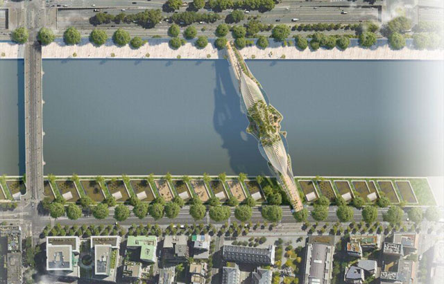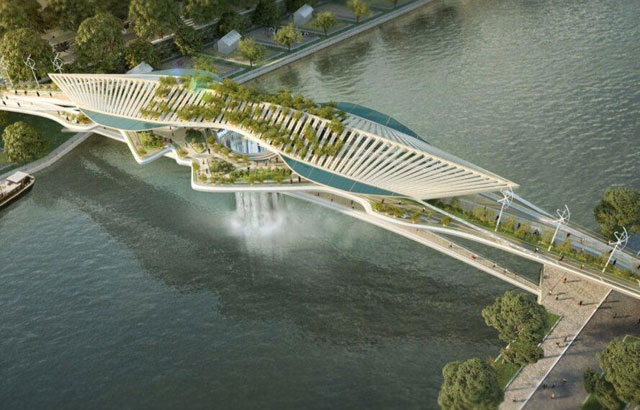 Inspirisan Vavilonskim visećim vrtovima, projektni biro Rescubika iz Pariza osmislio je pešački most preko Sene. Most bi bio prekriven zelenilom na više nivoa, od drvoreda duž mosta do visećih sadnica koje okružuju vodopad u središnjem delu. Novi javni park bi povezivao obale reke koje su do sada bile nepristupačne i one bi mogle da se pretvore u poljoprivredne parcele za lokalnu upotrebu.