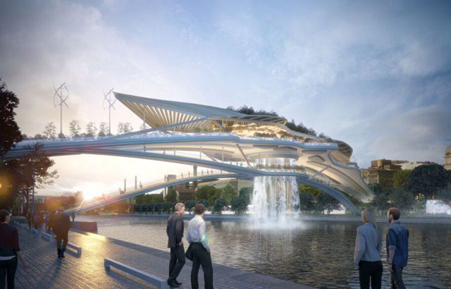 Most treba da pruži utičište onima koji žele makar na kratko da pobegnu od gradskog života, od gradske buke i zagađenja. Ova oaza mira to nudi sa svojim visećim vrtovima i vodopadom u cetralnom delu koji apsorbuju buku na način da dođu kao neka tampon zona