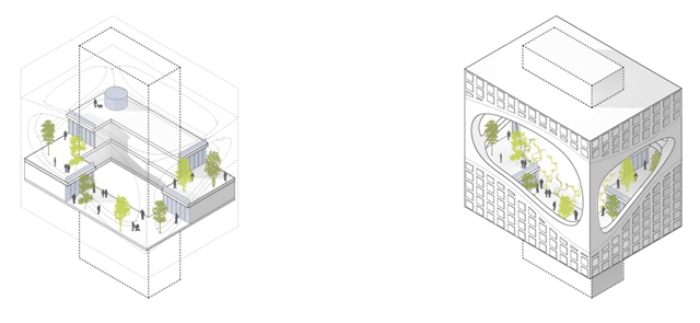 Kako renderi pokazuju, mnoštvo drveća i drugih biljaka i prostrane površine opremljene nameštajem i klupama obezbeđuju druženje i uživanje u prirodi. Višeslojne konstrukcije u okviru ovog dela pružiće različite vidike i brojna područja za ulazak. Biće omogućeni pogledi ka moru, planinama i gradu, a sve to iz jedinstvenog ambijenta u okviru zgrade u kojoj se živi.