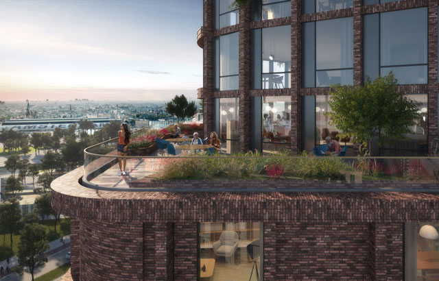 Zgradu pod nazivom "Brink Tower" zanimljive forme sa fasadnom opekom karakterisaće zelenilo, solarni paneli i sistemi za prikupljanje kišnice. Ovu kulu mešovite namene visoku 90m projektovala je firma Mecanoo, koja odnela pobedu za najbolju zgradu na svetu za prošlu godinu. Nalaziće se u Amsterdamu i prostirati na 28 spratova. U okviru nje je planirano 400 smeštajnih jedinica, i to: 120 socijalnih stanova, 30 domova za negu i 250 stanova srednje klase namenjenih mladim stručnjacima. Pored toga, na donjim spratovima nalaziće se maloprodajni prostori, kao i sadržaji za zabavu i rekreaciju.