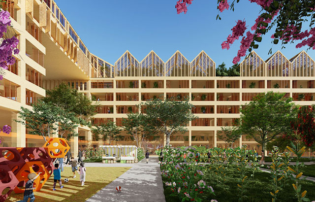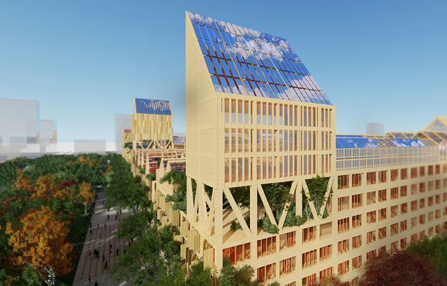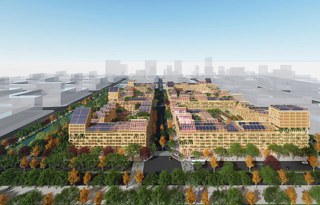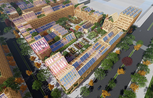 Četiri bloka će karakterisati izgradnja od masovnog drveta i pasivna rešenja. Kompleks mešovite namene uključivaće stanove, rezidencije za mlade i starije osobe, kancelarije, bazen, prodavnice, pijacu, vrtić, administrativni centar i vatrogasnu stanicu. Sve zgrade će biti pokrivene staklenim baštama u okviru kojih će se proizvoditi hrana za svakodnevnu upotrebu, dok će solarni paneli na njihovim nagnutim krovovima proizvoditi energiju. U prizemlju će se nalaziti male digitalne "fabrike" koje će omogućavati korišćenje 3D štampača i mašina za brzu proizvodnju predmeta za svakodnevnu upotrebu. Dakle, zgrada će imati "unutrašnji sistem" koji će objediniti proizvodnju energije, recikliranje vode, proizvodnju hrane i ponovnu upotrebu materijala, promovišući novi model urbanog upravljanja.