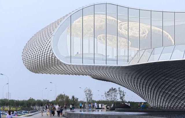 "The Wave" ja nova umetnička galerija u Tjencinu. Zgrada u formi velikog talasa nalazi se na obali i njenu fasadu karakterišu aluminijumske "pločice". Prostire se na 3563 kvadratna metra i u planu je da postane kulturno središte novog okruga Binhai u ovom gradu. Projekat je uradio šangajski studio Lacime Architects koji je inspiraciju za oblik objekta našao u udaru talasa koji se obrušava na obalu. Ovaj "talas" blistavog izgleda uspostavlja "dijalog" između samog objekta i prirode. Zgrada zapravo predstavlja simbolično postojanje gde se more i zemlja spajaju, odnosno mesto gde ljudi, more, vazduh i sunce stvaraju "vezu".