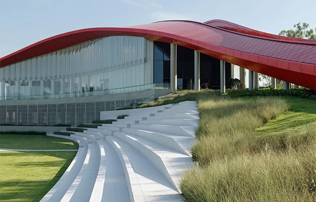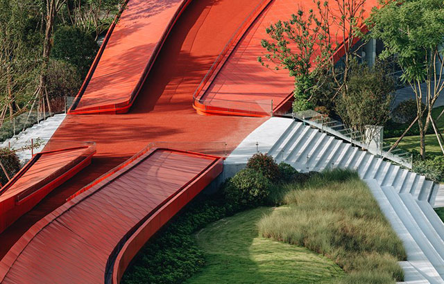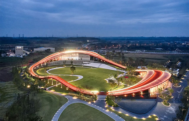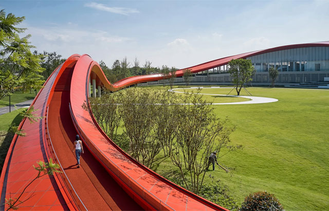 "Petlja mudrosti" nalazi se u Čengduu u KIni i jednim svojim delom prelazi preko krova objekta. Ona je zapravo šetalište dugo oko 698 metara koje se u jednom delu uzdiže i to do 25 metara visine dok se u drugom naslanja na zemlju pružajući spektakularne poglede na okolno zelenilo i daleke planine. Crvena boja je izabrana kako bi se napravio kontrast u odnosu na bujni zeleni pejzaž. Staza je prekrivena gumenom oblogom (gumirani asfalt) koja se koristi za atletske staze, pa je zato prijatna i za trčanje i šetnju.