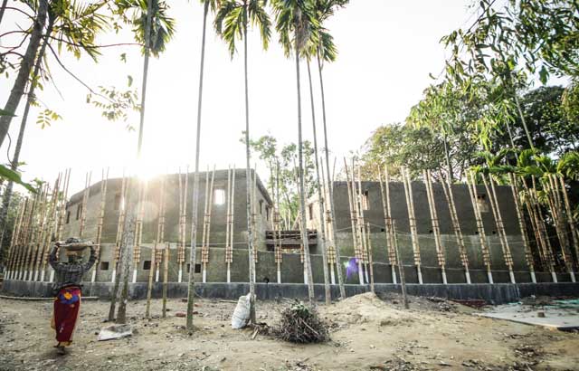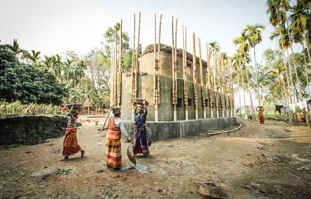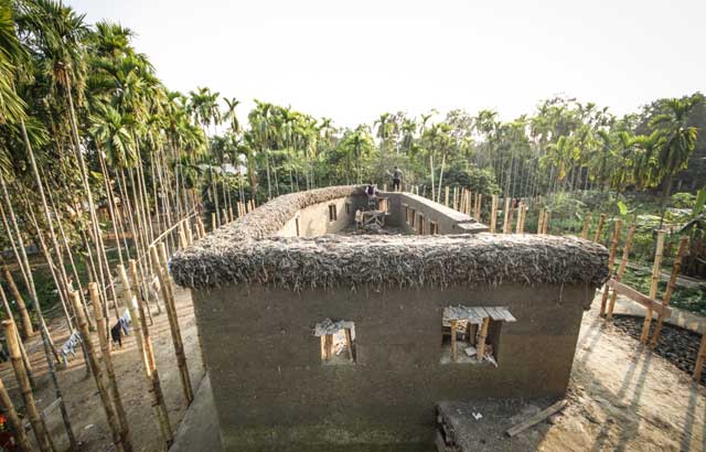 Procesom gradnje upravljala je firma lokalni izvođač Montu Ram Shaw koja je angažovala lokalne radnike na poslovima koji uključuju korišćenje blata i bambusa u cilju dobijanja moderne održive dvospratnice sa jednostavnim resursima uz pomoć "cob" tehnike.