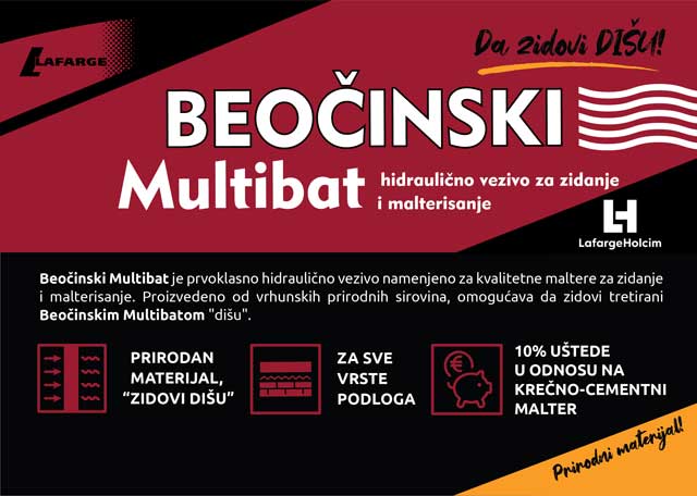 - Materijal je od presudnog značaja za dugovečnost svakog objekta - odgovor je majstora sa iskustvom na pitanje iz naslova. Od sedamdesetih godina prošlog veka u Srbiji se za zidanje i malterisanje koristi beočinsko hidraulično vezivo, nekadašnji Beomal, a danas u prodaji pod nazivom Beočinski Multibat, prvoklasni materijal za ovu namenu, po mišljenju korisnika.