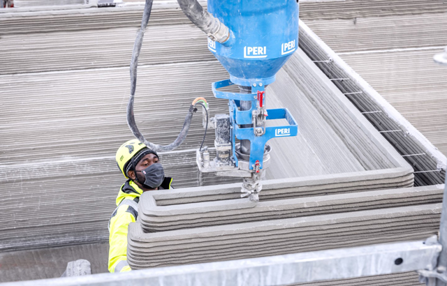 Tokom postupka izgradnje, štampač vodi računa o cevima i priključcima za vodu i električnu energiju koji se postavljaju kasnije. Moguće je izvoditi radove i unutar prostora objekta i dok je štampanje u toku. To znači da se ugradnja cevi i instalacija može vršiti tokom postupka gradnje. Radovi na spomenutom projektu su u toku i prvi sprat je već završen. Kompletiranje celog objekta se očekuje za 6 nedelja, plus vreme potrebno za dopunske radove. Kompanija Peri vodi radove za građevinsku kompaniju Michael Rupp Bauunternehmung.