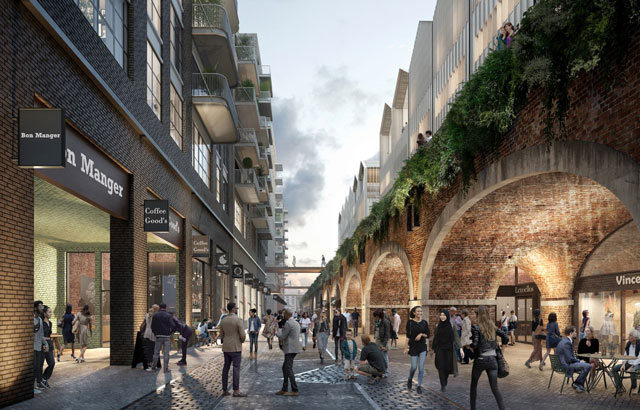 Bishopsgate Goodsyard - sadržaji ispod železnički lukova koji drže park (Foto: Hammerson i Ballymore)