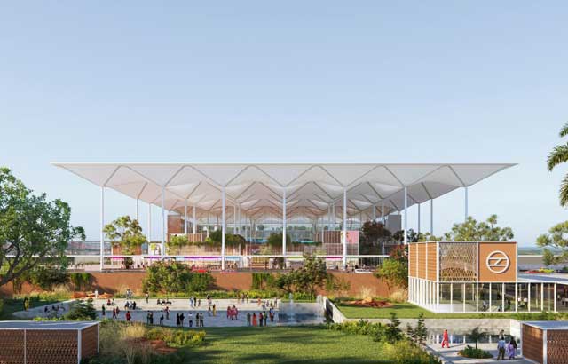 Proglašeni su pobednici takmičenja za projektovanje ugljenično-neutralnog terminala aerdoroma u Indiji koji će biti kapaciteta opsluživanja 30 miliona putnika na godišnjem nivou. "Delhi Noida" je međunardoni aerodrom u mestu Jewar, udaljen 40km od Nju Delhija. Pobednici, arhitektonske kompanije Nordic Office of Architecture, Grimshaw, Haptic i konsultanti iz STUP-a projektovali su "najzeleniji" aerodorom u Indiji.