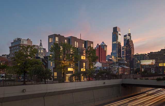 Na skučenoj gradskoj parceli širokoj samo tri metra postavljena je ova veoma uska kuća u okviru koje se nalazi čak sedam stanova. Smeštena je u Filadelfiji u Pensilvaniji. Uprkos ovako malom prostoru, unutrašnjost stanova izgleda iznenađujuće prostrano i udobno za stanovanje. Stambeni prostor odlikuju visoki plafoni i brojni prozori koji obezbeđuju veliku količinu dnevnog svetla, ali i minimalistički unutrašnji dekor koji odgovara malom prostoru.