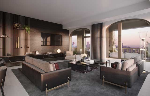 U okviru jednog njujorškog nebodera projektovano je pet luksuznih stanova za ljubitelje automobila. Projekat je uradio brinaski arhitekta Sir David Adjaye u saradnji sa automobilskim gigantom Aston Martinom. Enetrijerom dominira "automobilski" dizajn i italijanski namaštaj koji je urađen po narudžbini. Komadi nameštaja su od mermera Nero Marquina i italijanskog hrasta. Svaki stan dolazi sa posebnim izdanjem Aston Martin DBX sportskim automobilom i opcijom da bude uključena i posebna soba za simulaciju vožnje ovog automobila u posebnom sedištu.