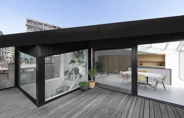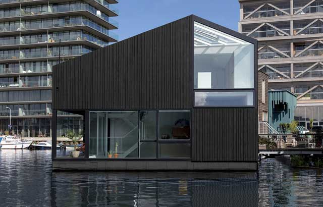 U okviru najodrživijeg plutajućeg naselja Schoonschip koje se nalazi u starom industrijskom predgrađu Amsterdama, nedavno je završen objekat koji se izdvaja od ostalih. Projekat je uradio holandski arhitektonski studio i29 Architects a karakteriše ga upečatljiv iskošeni krov i "idealno" upotrebljen prostor. Pored ovog objekta plutajuće naselje sadrži još 45 održivih stambenih objekata koji su spojeni "pametnim" molom. Priključeni su na jednu mrežu, dele resurse poput solarne energije, vode, otpada, pa čak i električne automobile.