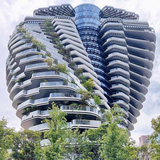 Ono što izdvaja ovu stambenu kulu od ostalih jeste njena forma inspirisana izgledom duple spirale DNK čiju fasadu krasi hiljade biljaka. Neboder visine 93,2 metra se uvija 4,5 stepeni po svakom spratu u odnosu na prethodni u okviru prvih dvadeset, što dovodi do toga da se od dna do vrha zarotira za 90 stepeni.