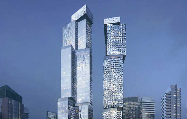 Projekat za ove kule odobren je još davne 2017. godine. Tada je predstavljeno sve detaljno vezano za sam dizajn i otkriveno da će uključivati rotirajuće podne ploče i fasadu od teksturiranog metala i stakla. Frank Gehry koji stoji iza rešenja rekao je da je cilj bio da kule budu jedinstvene ali da u neku ruku budu i "povezane" stvarajući dinamičan i neskavidašnji utisak koji će ostavljati na građane i posetioce. Zgrade sa atraktivnim fasadama reflektovaće svetlost i boje sa okolnih objekata i neba koje ih okružuje.