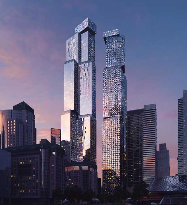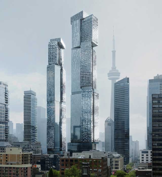 Veoma visoki uvijeni neboderi u planu su da zasijaju i dodaju obrise horizontu Toronta. u okviru "Gehry" projekta biće izgrađene dve kule, jedna visoka 289m a druga 262m. Obe će biti mešovite namene, s tim što će se u okviru jedne nalaziti stambene jedinice i hotel a u drugoj umetnička galerija i kampus za Univerzitet OCAD.