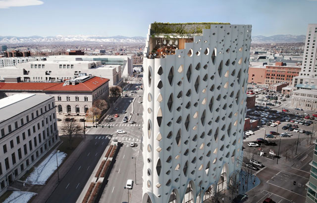 Na parceli koja se nalazi na samom uglu dve ulice u Denveru u Koloradu planiran je da se gradi hotel koji će postati novi centar društvenog života u ovom gradu. Za dopadljiv izgled fasade koji podseća na kuhinjsku alatku - rende, iz firme koja je uradila projekat je rečeno da je to slučajnost jer je inspiracija zapravo bila kora lokalnog drveća aspen. Ovaj objekat se može pohvaliti energetski održivim karaktersitikama. Za napajanje će koristiti solarnu energiju a na vrhu će se nalaziti zeleni krov.