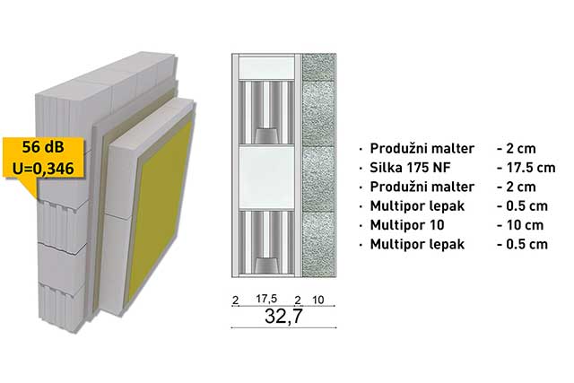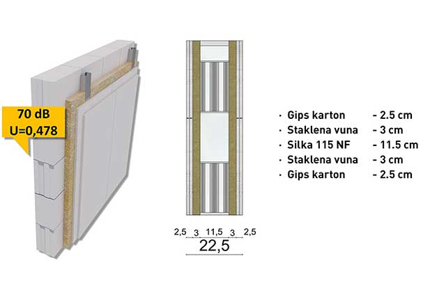Upotrebom Silka blokova, na ovoj poziciji može se postići zvučna izolacija od 56dB, što je za čak više od propisanih vrednosti.
