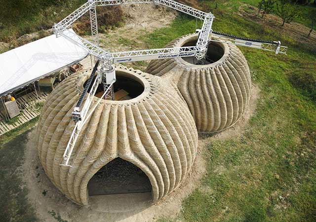 Nedavno je završena kupolasta prototip kuća sagrađena tehnikom 3D štampe. Nalazi se u ruralnom delu, između Bolonje i Ravene. Ona je zapravo spoj tradicionalnih materijala za gradnju i napednih građevinskih tehnologija. Izgrađena je od lokalne gline koja je korišćena kao materijal za 3D stampu. Pomoću "Crane WASP", novorazvijenog modularnog sistema 3D štampe, napravljena je održiva dvosobna kuća. Ovo je prva 3D štampana konstrukcija koja je kao input za izgradnju koristila autohtono zemljište.
