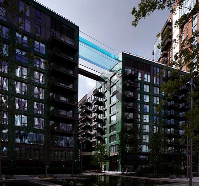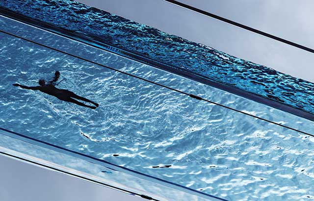 Bazen na krovu nije više neobično videti, ali bazen u "vazduhu" sa transparentnim dnom svakako jeste a naročito ako se nalazi na visini od 35 metara i spaja dve stambene kule. Dugačak je 25 metara i izgrađen od akrilnih ploča koje mu daju prozirnost. Ideja je bila da se stvori potpuno transparentna a jednostavna konstrukcija koja će pružiti i kupačima i posmatračima "dramatičan" osećaj. Projektovao ga je arhitektonski studio HAL koji za njega kaže da je prvi u svetu takve vrste.