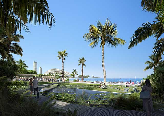 Pobedničko rešenje proširuje područje plaže i stvara novu marinu, gde planiran prostor sa poslovno-inovacionim centrom koji sadrži hotele, konferencijske sadržaje, jahtni klub i Muzej dizajna i inovacija, dok bi se na suprotnom kraju plaže nalazio deo posvećen lokalnoj zajednici. Između njih je preloženo da budu tri tematska okruga, svaki sa svojim prepoznatljivim karakterom.